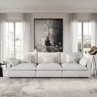 • Cloud-Like Comfort: Unique blend of sponge, cotton, and down for soft, resilient seating.